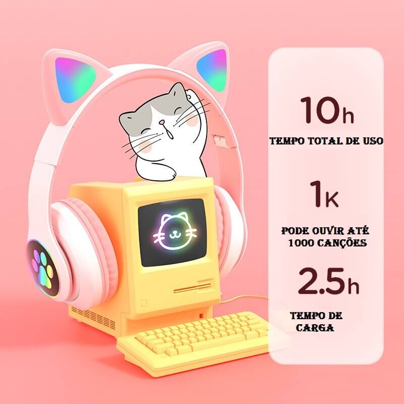 Deixe seu filho mergulhar em um mundo de sons e diversão com o Fone de Ouvido Orelha de Gatinho. Compre agora e veja o sorriso brilhante no rosto dele!